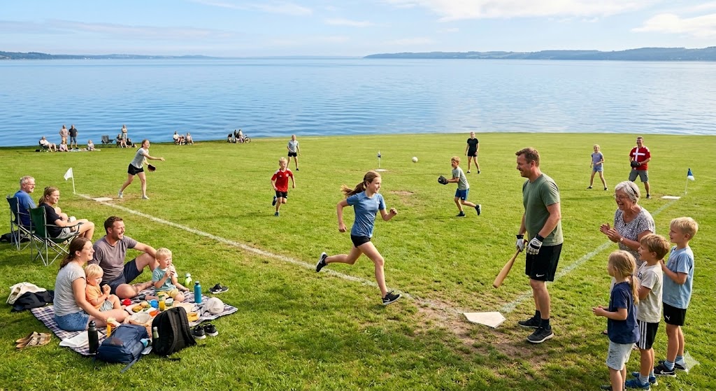 Kom ned på højen hvor vi hygger med at, spille rundbold